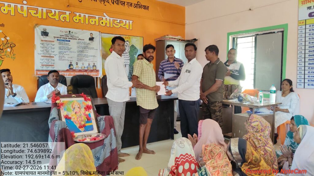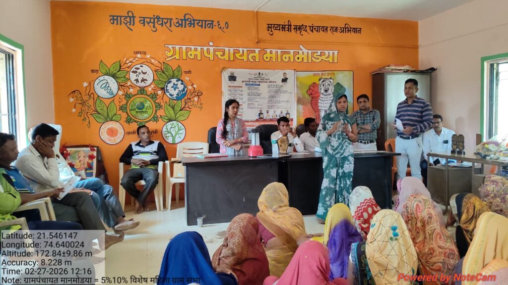 मानमोड्या ग्रामपंचायत येथे आज दि.२७/०२/२०२६ रोजी दिव्यांग, महिला व बालकल्याण, १५ % बाबत कार्यक्रम घेण्यात आला.